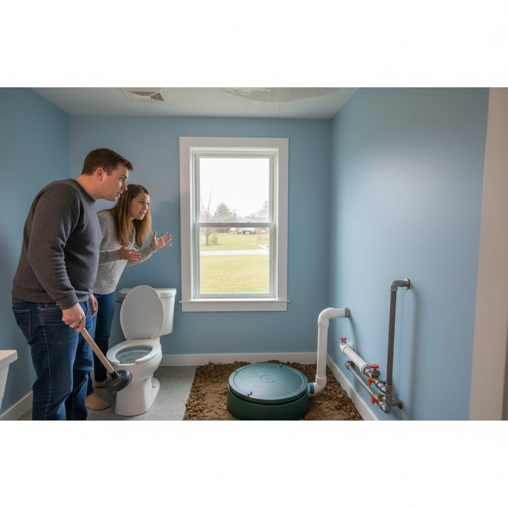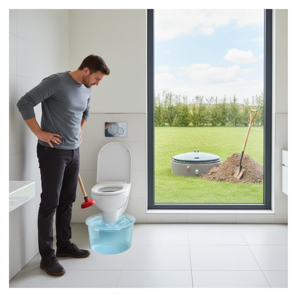 Что делать, если септик установлен, но в доме пропал смыв в унитазе на втором этаже
